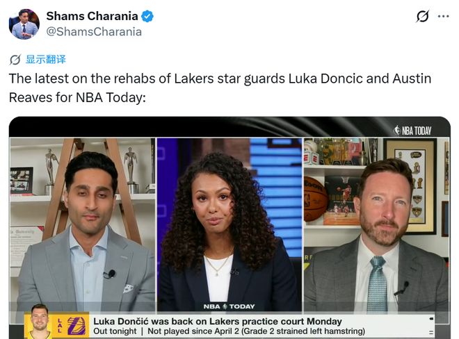 Shams说道:“湖人队内消息显示,奥斯汀-里夫斯的恢复进度实际上要快于卢卡-东契奇。我获悉,里夫斯已经开始进行一对一球场训练,下一步将循序渐进开展3v3、5v5对抗训练。要知道,他在4月初的恢复周期预估为4至6周。理论上来看,他有望在本轮系列赛后期复出,最晚也能赶上第二轮的初期(如果湖人淘汰火箭)。湖人方面并不指望东契奇在本轮系列赛回归,他目前归期未定。但里夫斯的球场恢复训练,已经取得实质性进展。”