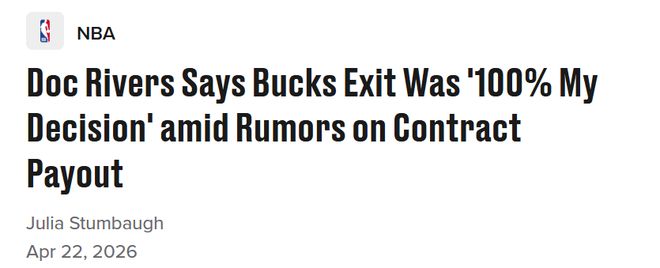 2025-26赛季,雄鹿仅取得32胜50负的战绩、无缘季后赛,球队与字母哥的矛盾也公开激化,在此背景下,里弗斯选择离任。