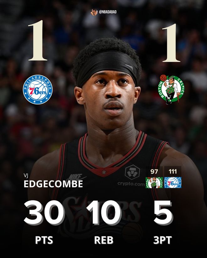 北京时间4月22日,NBA季后赛,费城76人客场111-97大胜波士顿凯尔特人,大比分1-1平。这场比赛绿凯一度领先13分被逆转,尤其是第二节他们被埃奇库姆的三分球给打懵了,单节新秀埃奇库姆拿到16分,之后费城一直压制绿凯完成以下克上。