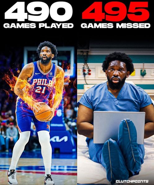 资本家噩梦!恩比德生涯出场490场缺席495场 76人做好无大帝准备