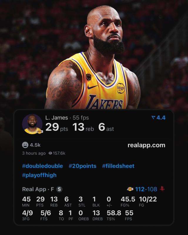 “听着,我们一路走到了这里,所以我就是要看看自己能否有所作为。很显然,我在场上对我们整个球队非常重要。”41岁的詹姆斯说着,在这个夜晚,他出战了45分04秒,砍下29分13篮板6助攻,三分线外9中4,其中就包括将比赛拖进加时的那记三分球。