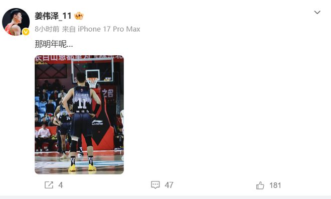 50分惨案!3年无缘季后赛,姜伟泽社媒写下4个字,或引发吉林动荡